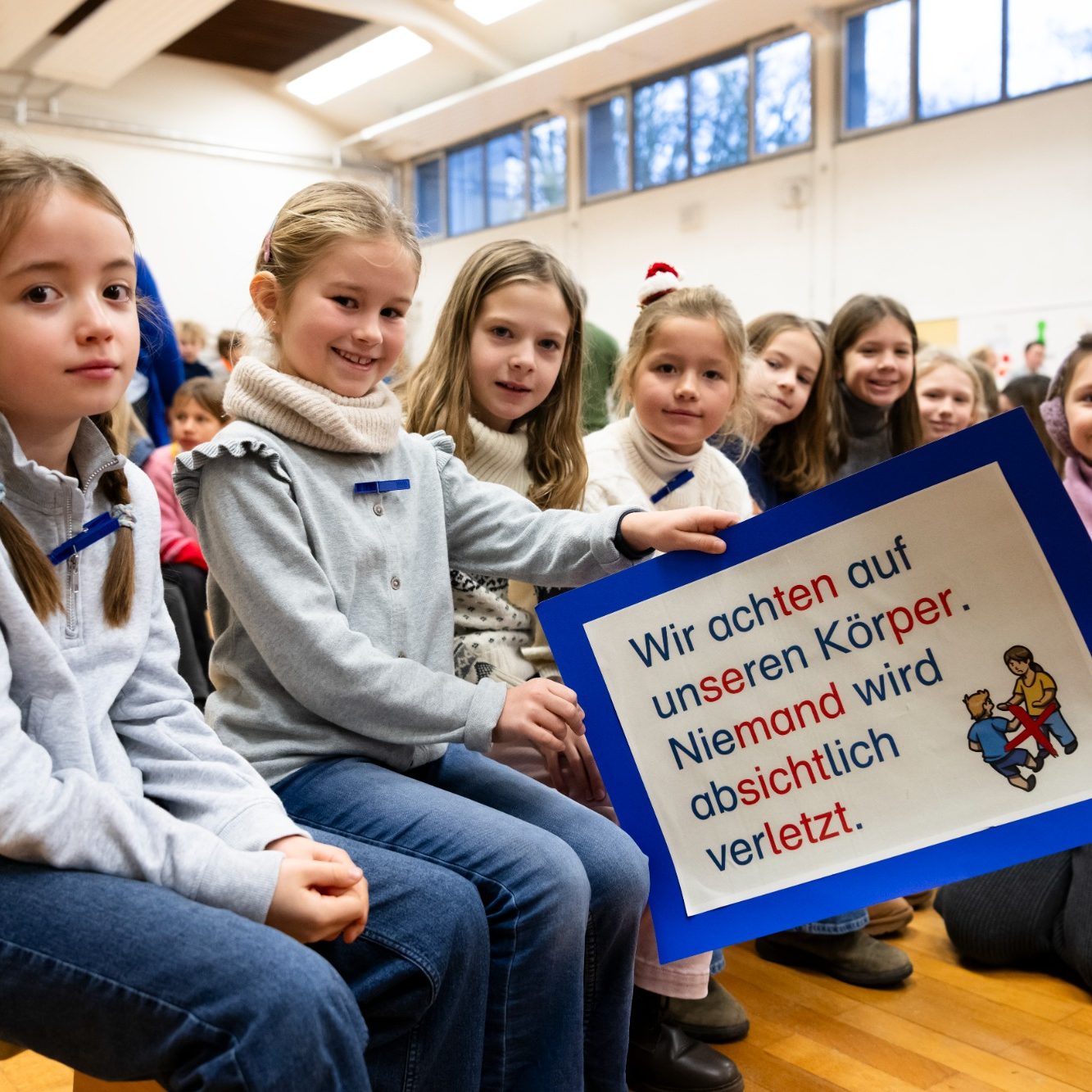 Eine Kinderrechteschule zu sein bedeutet für uns, dass alle Kinder und Erwachsene unserer Schule nach den Kinderrechten leben und wir einen respektvollen Umgang miteinander pflegen. Dabei sind die Kinderrechte eine gute Hilfe. Wir möchten, dass sich alle Kinder in der Schule gut fühlen und nach ihren Fähigkeiten gefördert werden. Sie sollen sich sicher fühlen. Sie sollen wissen: Wir Erwachsenen hören euch zu. Wir lassen euch mitbestimmen, zum Beispiel im Schülerparlament.