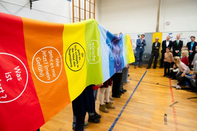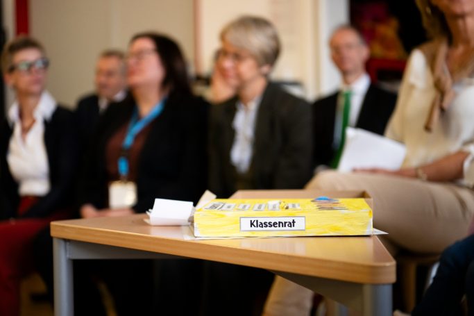 Zwei Klassen stellten ihre Kinderrechte-Poster vor und die Klasse 3a gewährte Einblicke in ihren Klassenrat, bei dem die Schülerinnen und Schüler der Ministerin interessiert Fragen stellen konnten.