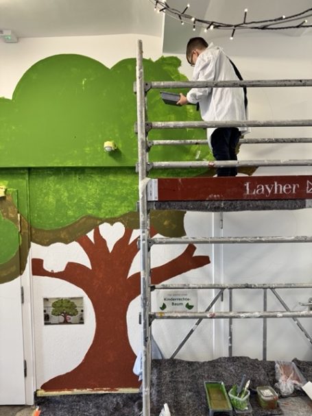 Der von den Kindern gemalte Kinderrechte-Baum wird in dieser Zeit mit uns wachsen, denn nach und nach werden dort alle wichtigen Kinderrechten sichtbar.