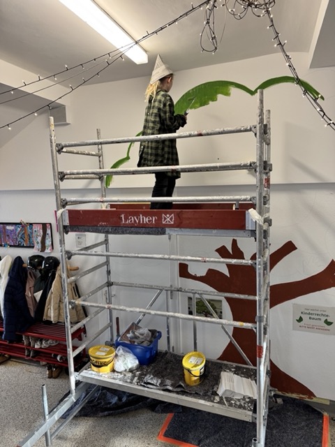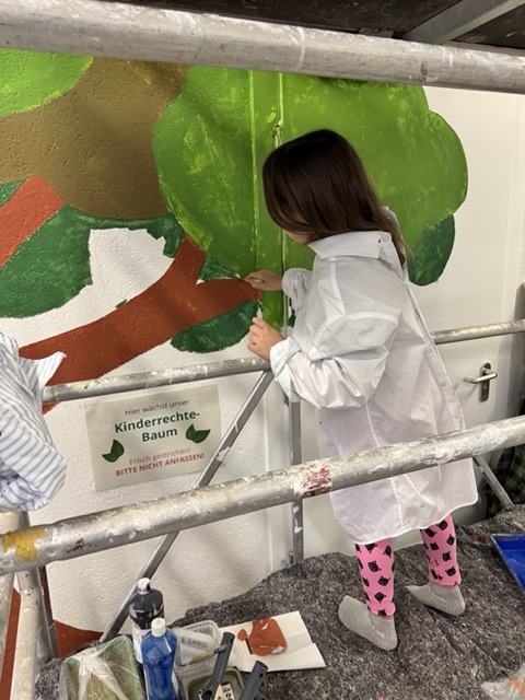 Der von den Kindern gemalte Kinderrechte-Baum wird in dieser Zeit mit uns wachsen, denn nach und nach werden dort alle wichtigen Kinderrechten sichtbar.